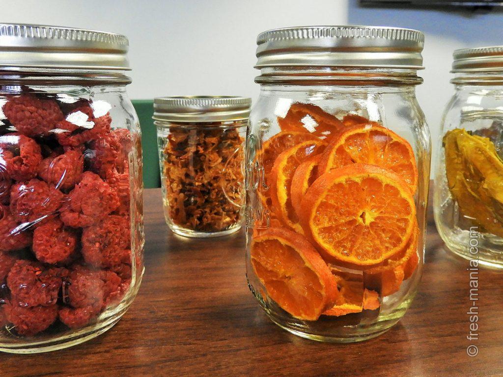 Профессиональные дегидраторы удобны тем, что позволяют одновременно высушивать разные виды овощей, зелени, ягод и фруктов, разместив их ярусами на предусмотренных решетках. Температуру, время и режимы сушки можно устанавливать самостоятельно. Минимальные температуры постепенно выпаривают воду и оставляют витамины. Но стоит помнить, что в них становится больше фруктозы.